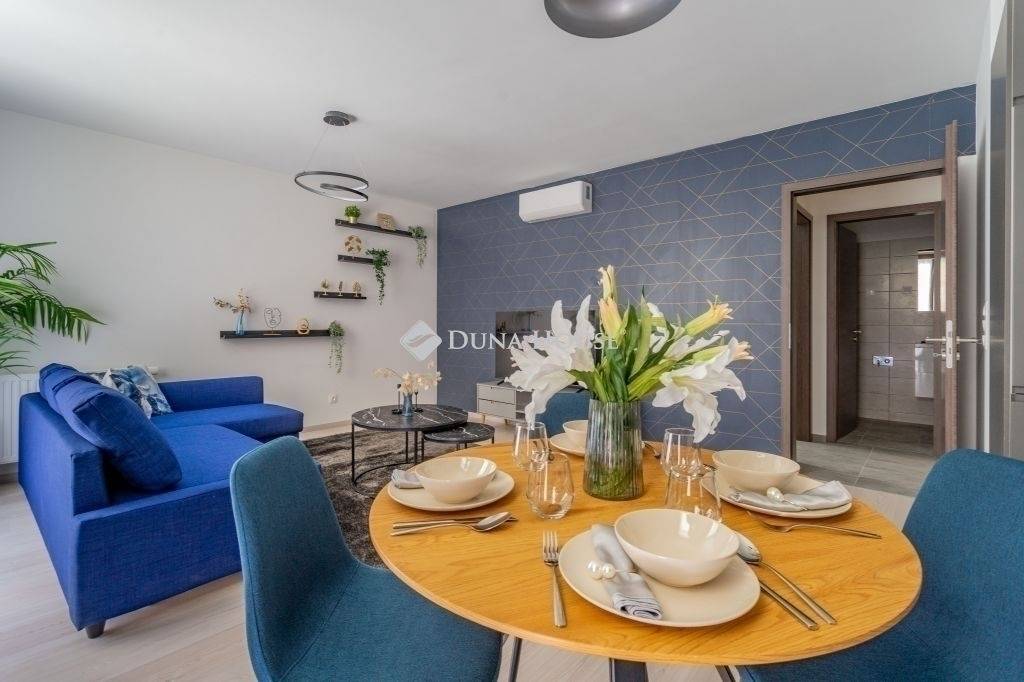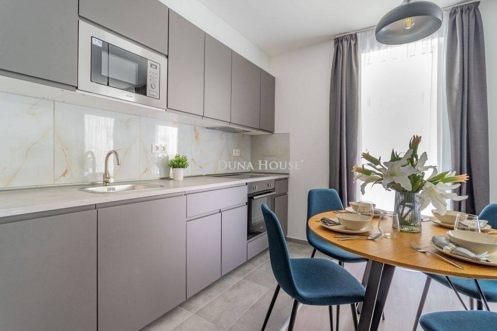 Lőportárdűlőn! Eladó 47nm+9nm erkélyes lakás a XIII. kerületben, 2023-ban épült társasházban. Az ingatlan első emeleti, kertes udvarra néz, nem utcára. Fűtése házközponti fűtés egyedi méréssel. A közös költség 22.344FtA fotókon látható bútorokat kötelező megvásárolni, melyeknek ára a vételáron felül +4 millió Ft. Tároló, garázs nem tartozik hozzá. Nagyszerű lehetőség! A belváros pillanatok alatt elérhető. További információért, megtekintéssel kapcsolatban keressen elérhetőségeim valamelyikén.