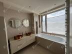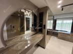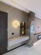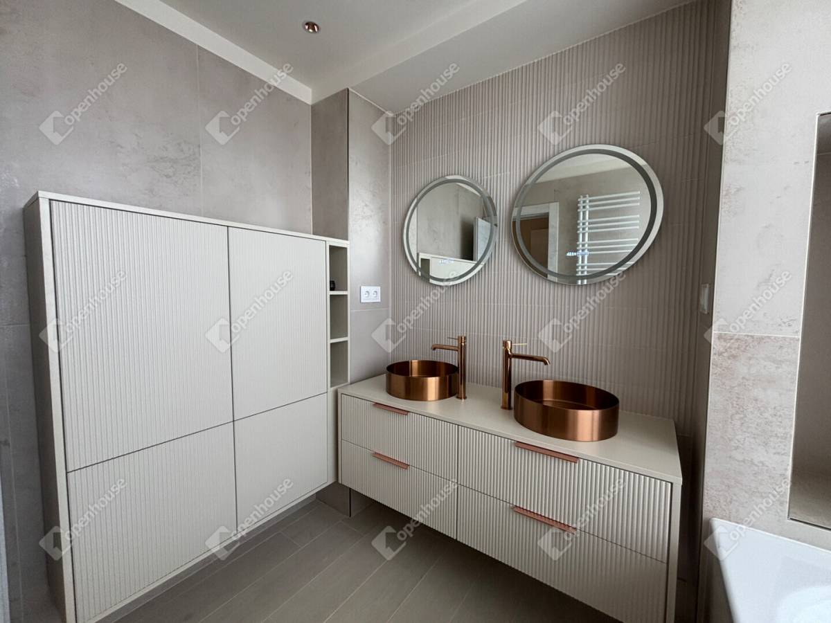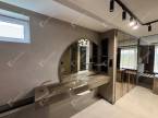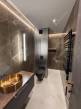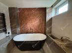 exkluzív fürdőszobák szabadon álló káddal, bronz csaptelepekkel és természetes hatású kőburkolatokkal,