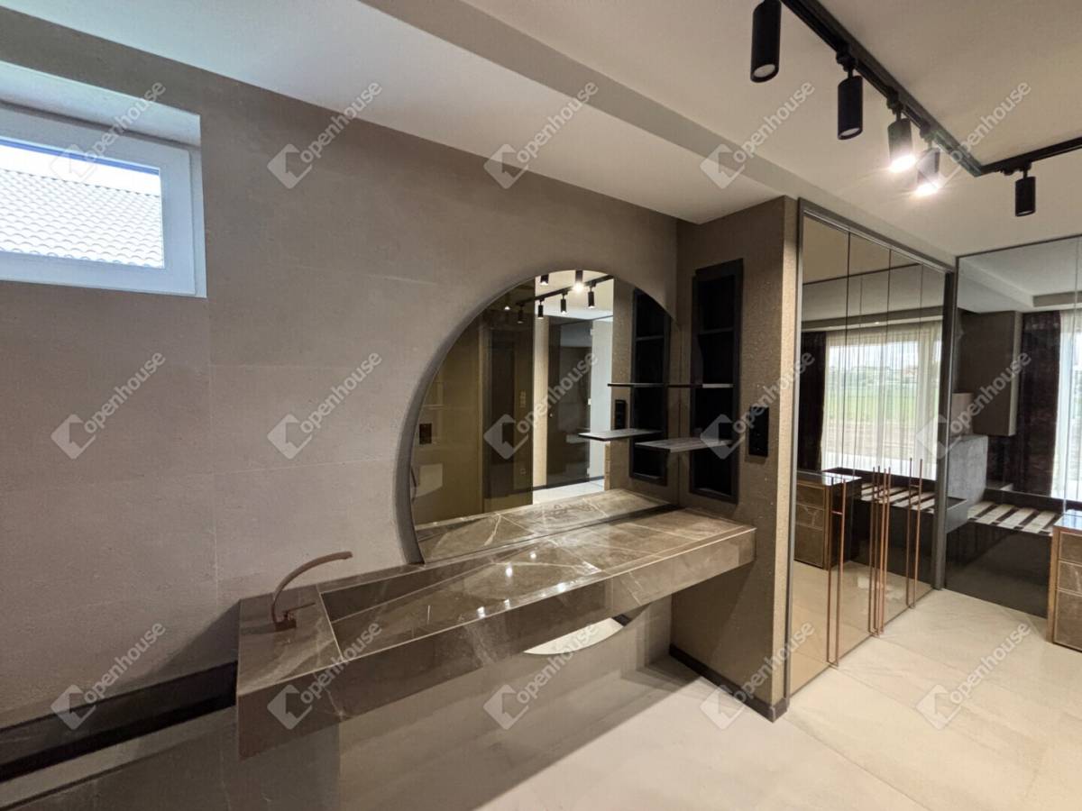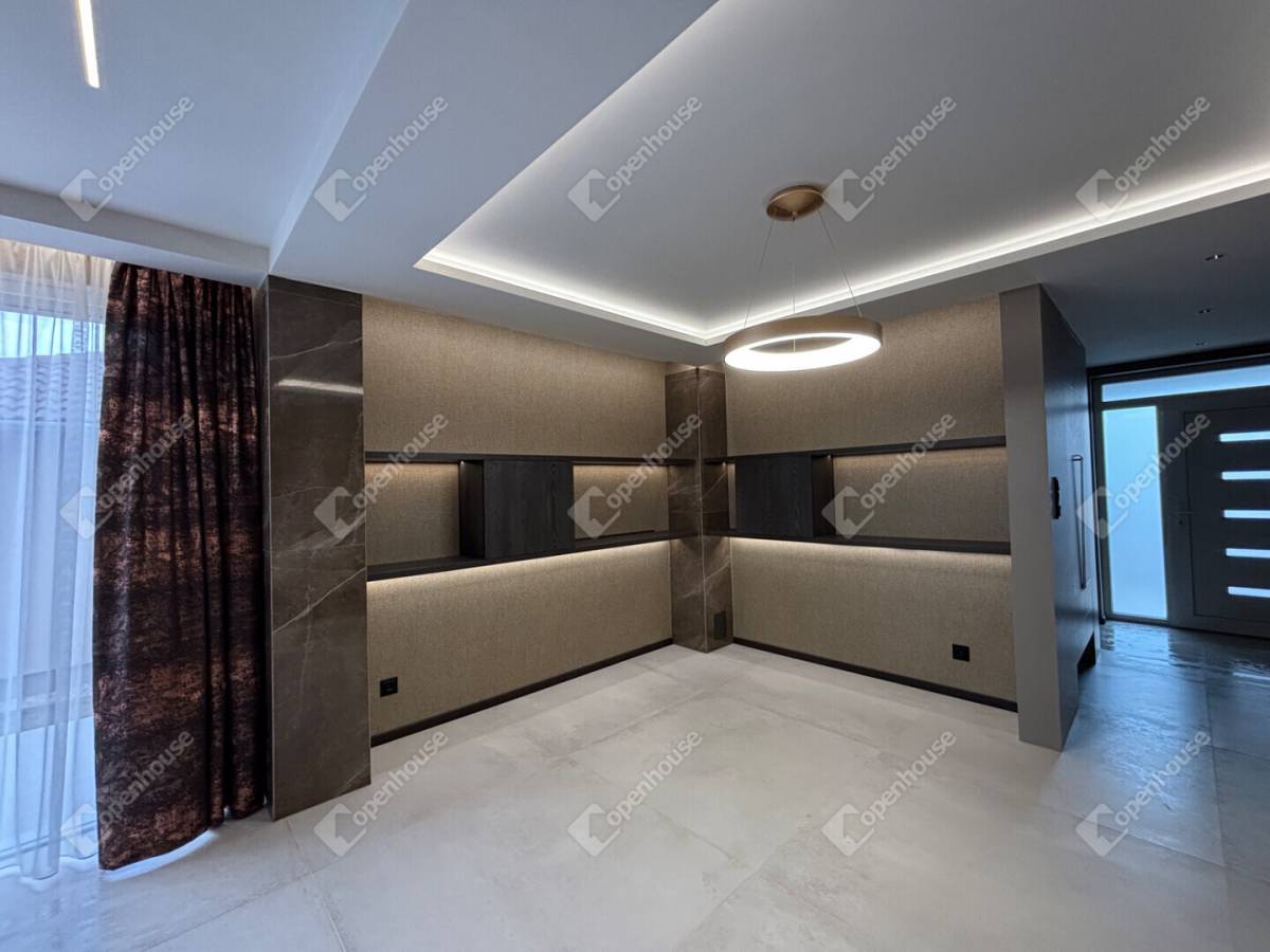 A ház stílusa modern-minimál luxus, amelyet prémium anyaghasználat és egyedi belsőépítészeti megoldások tesznek különlegessé: