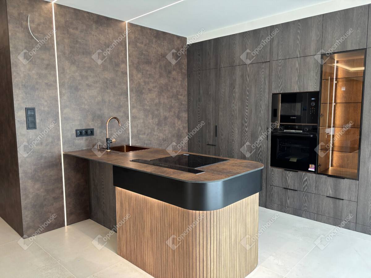 impozáns nappali–konyha–étkező (36,47 m²) egyedi beépített bútorokkal és nagyméretű teraszkapcsolattal,