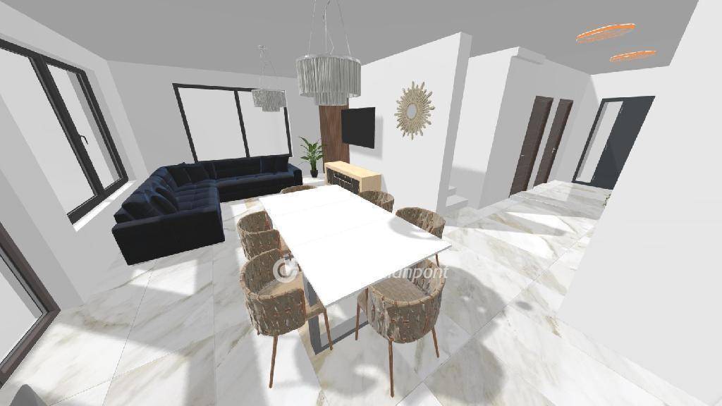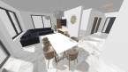 -Tágas nappali, étkező, konyha egybenyitott tér