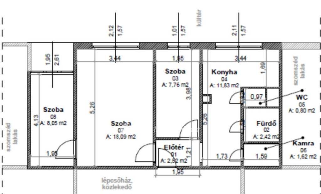 Alapterület: Ideális elosztású, 1 plusz 2 félszobás panel lakás.