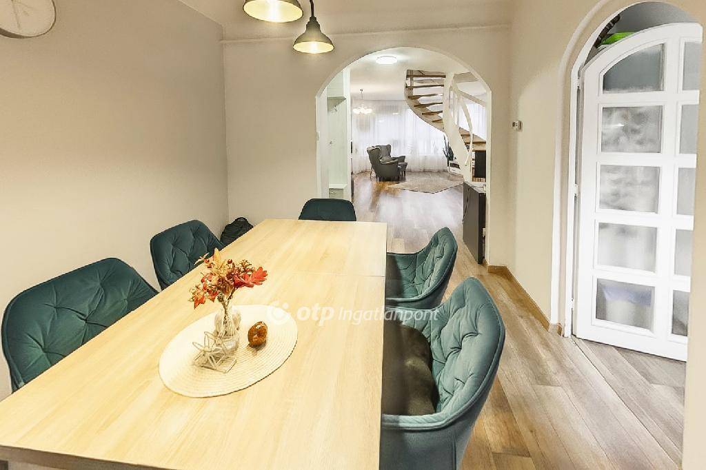 A lakás 3 éve teljeskörű felújításon esett át, beleértve a fűtésrendszert (modern kondenzációs kazán, alsó szinten padlófűtés, fent radiátorok), nyílászárókat, konyhabútort, erkélyt, burkolatokat, és a gardróbot. A vízálló laminált padló és a kerámia járólapok kombinációja elegáns és időtálló megoldás.
