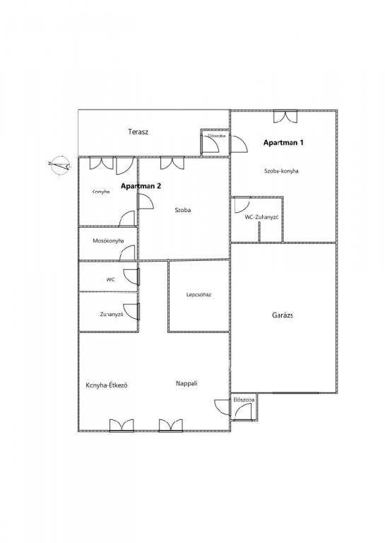 Az ingatlan forgalomtól mentes, rendezett környezetben található. A földszinten előszoba, egy légtérben kialakított konyha-étkező-nappali valamint két önálló apartman kapott helyet, amelyek egymásból és a fő lakrészből is megközelíthetők. A ház bal oldalán 50 m2-es fedett gépkocsibeálló, jobb oldalán 19 m2-es, szerelőaknával ellátott zárt garázs található. Innen nyílik a 8,5 m2-es pince, ahol a gáz-központi és a vegyes tüzelésű kazán kapott helyet. A terasz alatt további 4,5 m2-es pince is rendelkezésre áll. A hátsó részen egy 24 m2-es fedett terasz és 143 m2-es gondozott udvar biztosít kellemes szabadtéri pihenést. Az egyik apartman szobából, konyhából, külön WC-ből és fürdőszobából és mosókonyhából áll, a másik egy szoba-konyhát és fürdőszobát foglal magában. Mindkettő közvetlenül a teraszról is nyitható. Az emeleten három szoba és egy fürdőszoba helyezkedik el, a padlástér pedig további bővítési lehetőséget rejt, mivel a fűtéstechnika előkészítése már adott. A fürdőszobák és konyhák járólappal, a többi helyiség pedig laminált padlóval és parkettával burkolt.