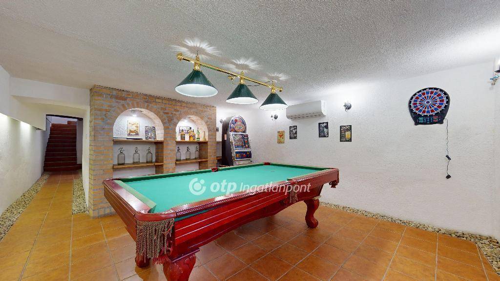 Az ingatlan a Deák Ferenc utcában található, rendezett környezetben. A házban előszoba, fényes nappali, 2 tágas hálószoba, étkező, konyha, zuhanyzós fürdőszoba WC-vel, valamint egy praktikus házimunka helyiség található, ahonnan a pince is megközelíthető. Az 50 m2-es, fűthető pince kis ablakkal rendelkezik, jelenleg klubszobaként van kialakítva. A házhoz tartozik továbbá egy 60 m2-es fedett terasz, amely ideális szabadtéri pihenésre és vendégfogadásra. A fürdőszoba járólappal, a többi helyiség pedig laminált padlóval burkolt. Az otthon melegét hőszivattyús rendszer biztosítja, alternatívaként gáz-cirkó és kályha is rendelkezésre áll.