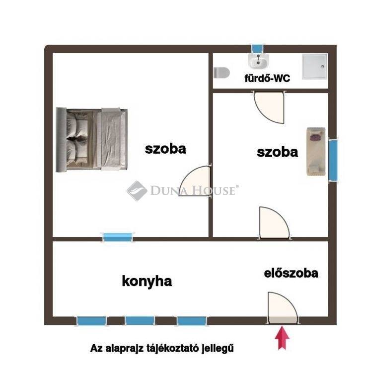 Az ingatlanba lépve konyha, kis előszoba rész lett kialakítva, meleg vizet villanybojler adja. Szemben szoba, fürdő-WC-vel, balról pedig a nagyobb szoba kapott helyet. Fűtését cserépkályha biztosítja, a környék csendes, rendezett.