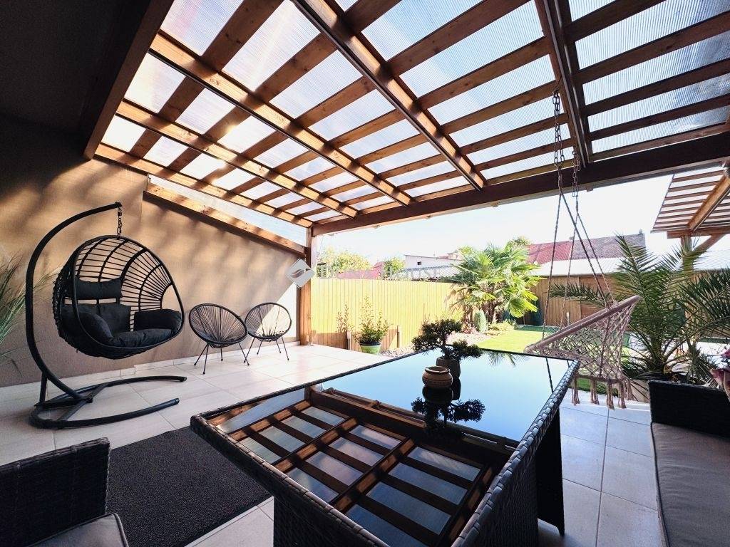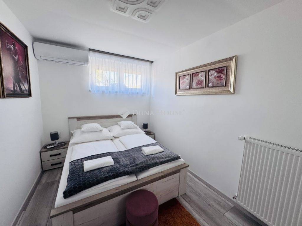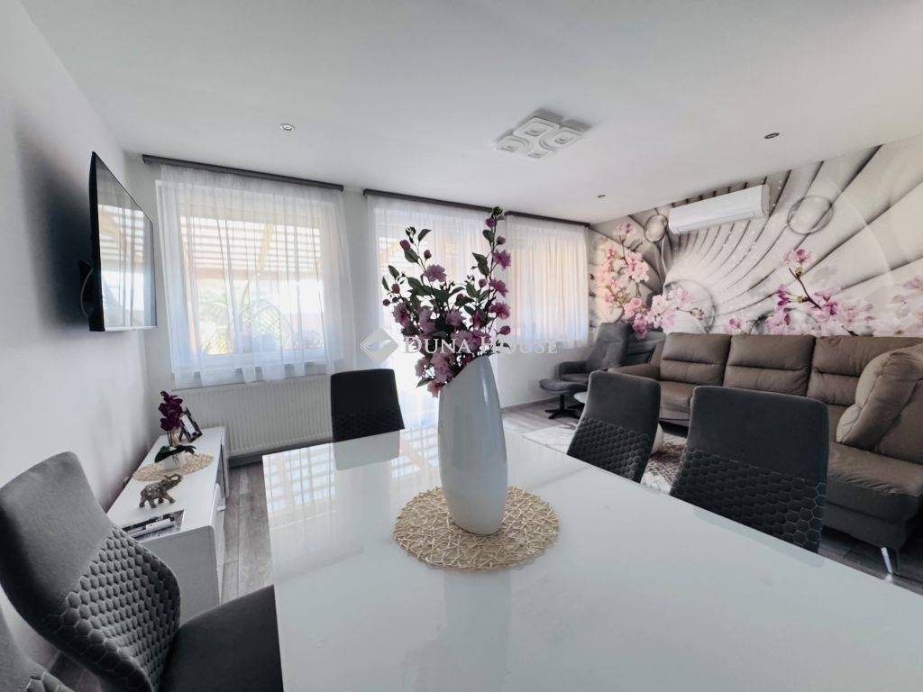 Eladó ígényesen felújított, belső kétszintes lakás kertkapcsolattal Harkány központjához közel!Harkány kedvelt, csendes családi házas övezetében, a fürdőtől és a városközponttól mindössze pár perces sétára kínálunk megvételre egy teljeskörűen felújított, belső kétszintes, kertkapcsolatos lakást.A lakás elosztása praktikus és tágas:amerikai konyhás nappali,két külön nyíló hálószoba,két igényesen kialakított fürdőszoba biztosítja a kényelmet.A nappaliból közvetlen kijárat nyílik a 22 m²-es fedett teraszra, amely a saját, mediterrán hangulatú kertrészre néz ideális hely a pihenésre és a baráti összejövetelekre.Az ingatlan teljes berendezéssel, bútorzattal, gépekkel együtt kerül értékesítésre, így az új tulajdonos azonnal birtokba veheti.További extrák:saját gépkocsi-beálló,igény szerint garázs is vásárolható.Ez a hangulatos, gondosan karbantartott otthon tökéletes választás állandó lakhatásra, nyaralónak vagy akár befektetésre is!