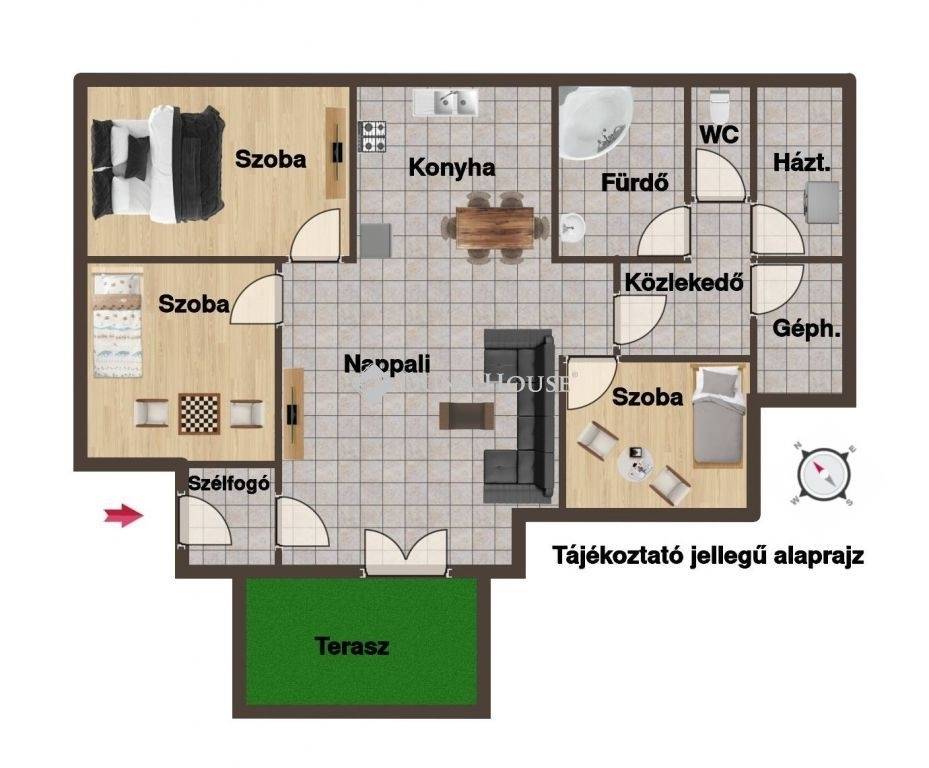 3 külön nyíló szoba + amerikai konyhás nappali
