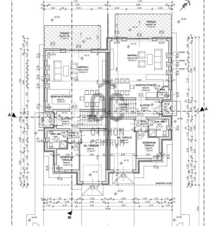 A burkolatok, szaniterek és egyéb anyagok választhatóak, belső falazat kérésre változtathatóak.