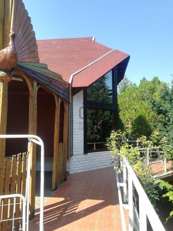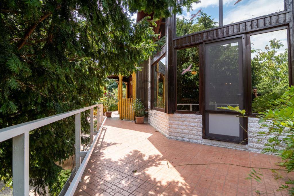 A ház kellemes klímáját az évtizedes fák, és a kert növényei biztosítják. A házat körülölelő erkélyről csodás panoráma nyílik a városra, és a Mecsek lankáira.