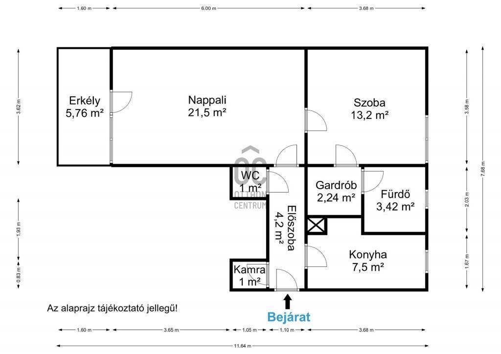 -Alapterület: 56 m² + 5,7 m² erkély