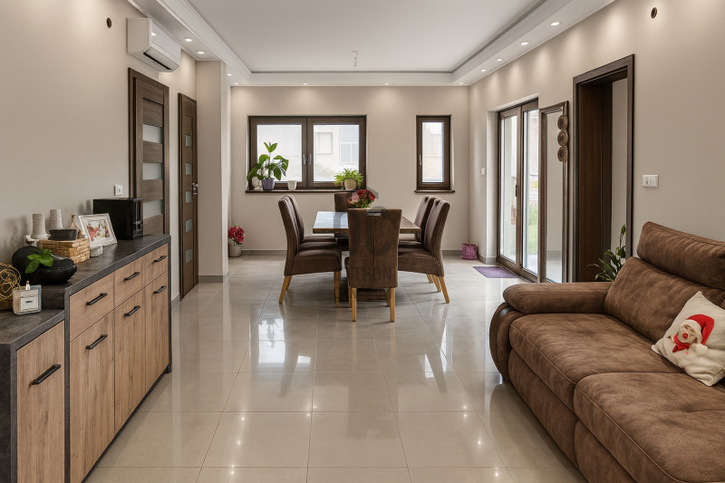 - 3 rétegű, hőszigetelt műanyag nyílászárók dióbarna színben, redőnnyel és szúnyoghálóval