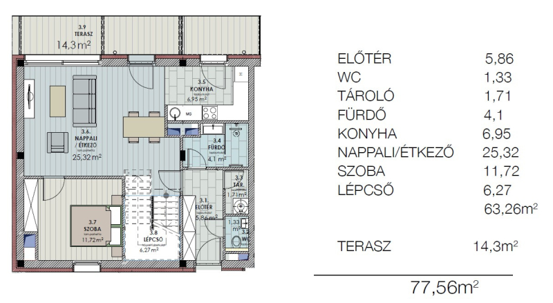•60 m² napozóterasz és 15 m² panorámás erkély