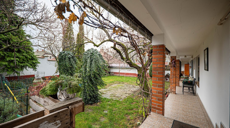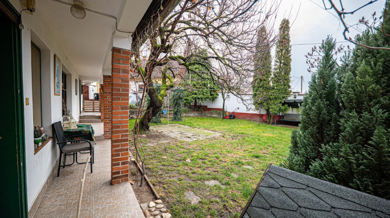 Az udvar kicsi kb. 150m2-es fűves, locsoló berendezés bele van építve. Ezért annak ajánlom aki nem kapálni szeretne hanek csak kiülni a nyugalom szigetére egy kávéra vagy a családdal piknikezni!