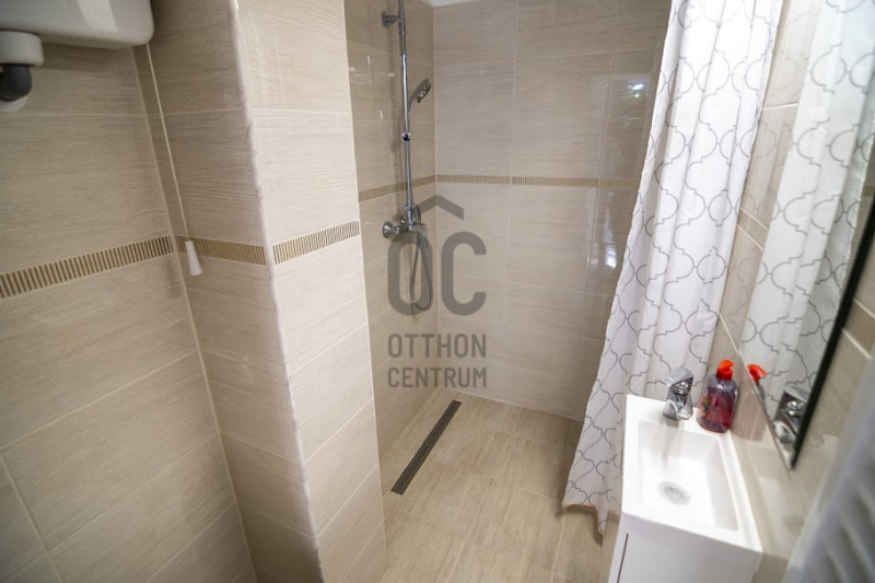 -Igényes, zuhanyzós fürdőszoba folyókával