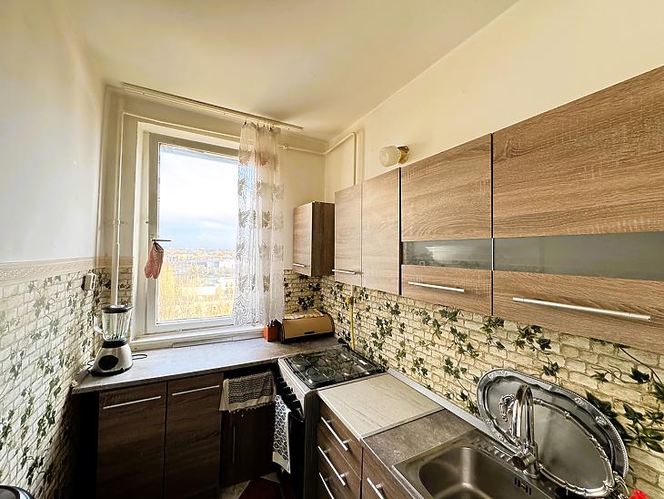 A konyhája ablakos, illetve új konyhabútorok lettek beépítve.