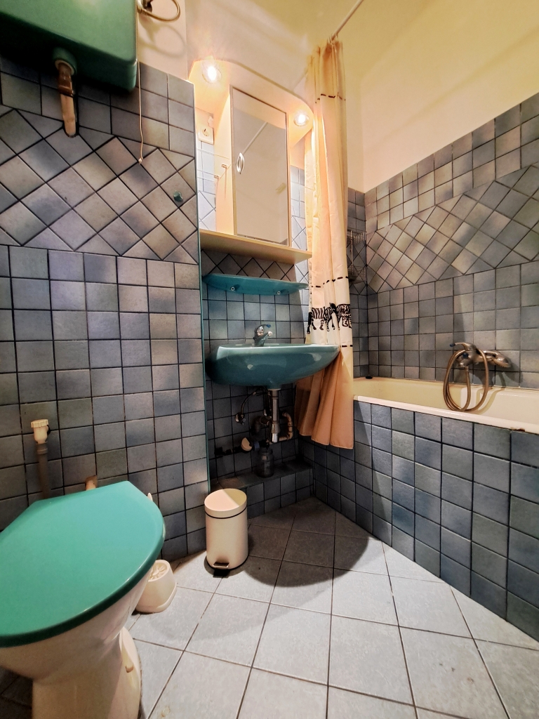 *fürdőszobában kád, a melegvizet gázátfolyós vízmelegítő biztosítja