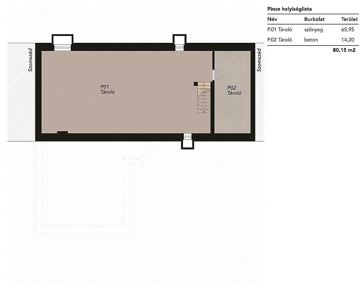 A ház alatt 80 nm nagyságú normál belmagasság rendelkező, jól pakolható, vagy műhelynek használható pince helyezkedik el.