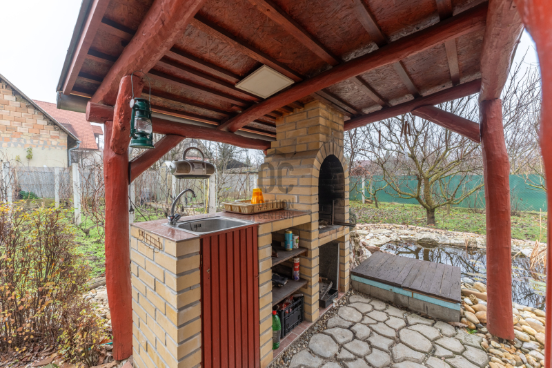 • hangulatos kerti szaletli kemencével és hideg–meleg vizes mosogatóval