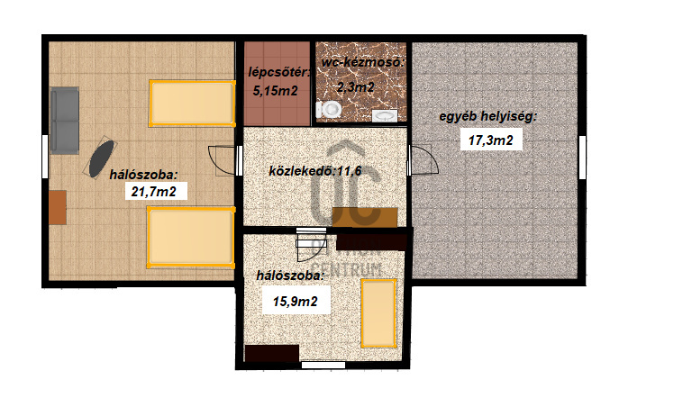 • egy nagy, világos tér, amely új tulajdonosa fantáziájára vár: lehet plusz hálószoba, játszószoba vagy dolgozószoba