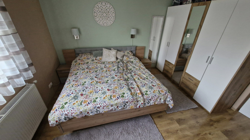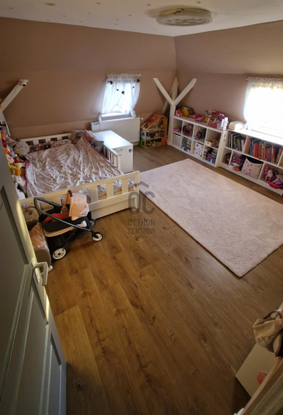 A 120 m²-es ház (80 + 40 m²) praktikus elrendezéssel várja új lakóit. A földszinten tágas nappali, étkező, modern konyha, egy hálószoba, kádas fürdő és külön WC található. Az emeleten két szoba, gardrób és zuhanyzós fürdő kapott helyet. A 13 m²-es külön bejáratú pince sokféle módon hasznosítható.