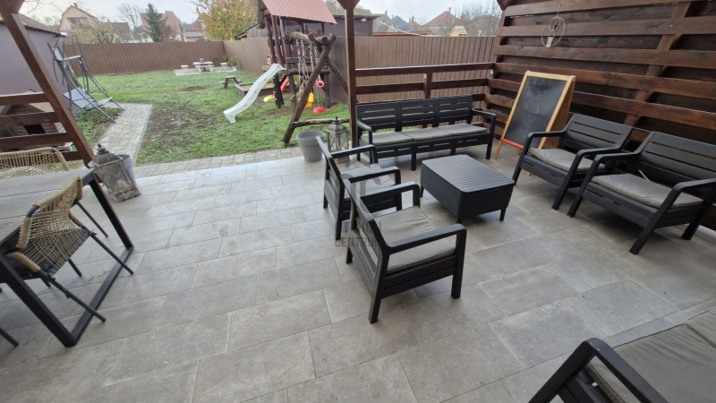 Az otthon kényelméhez két klíma, kombi kazán és egy okosrendszer is hozzájárul, amelyről távolról vezérelhető a kapu, a fűtés, a klímák, a riasztó és a világítás. A 700 m²-es telek rendezett és élhető: 50 m²-es előkert díszfákkal, 40 m² fedett terasz, saját szalonnasütő, játszótér, vetemény és kétállásos beálló. Új tetőlemez, új kerítés, műanyag nyílászárók, 3 fázisú áram, 4 zónás riasztó és külső kamerák teszik biztonságossá és időtállóvá.