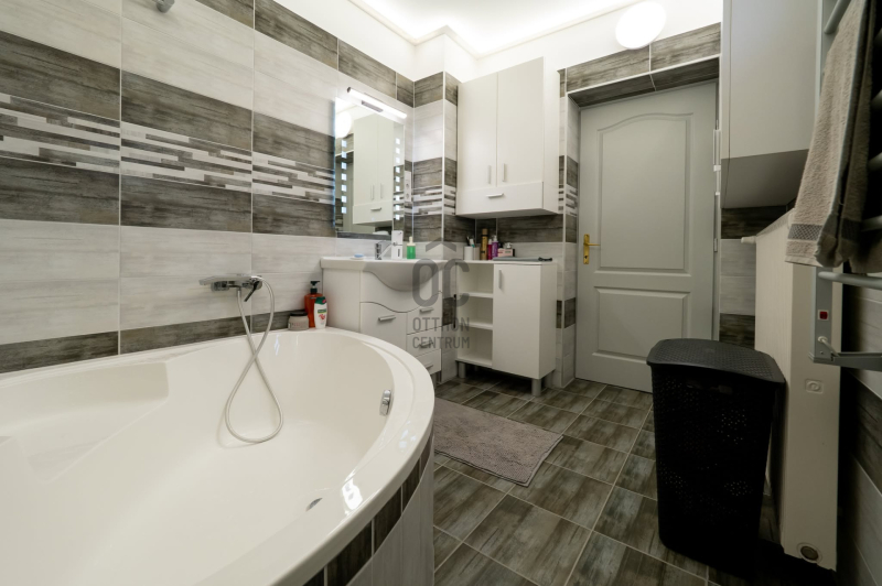 - Az alsó szinten 30 m2-es garzon lakás biztosítja egy családtag teljes elkülönülését