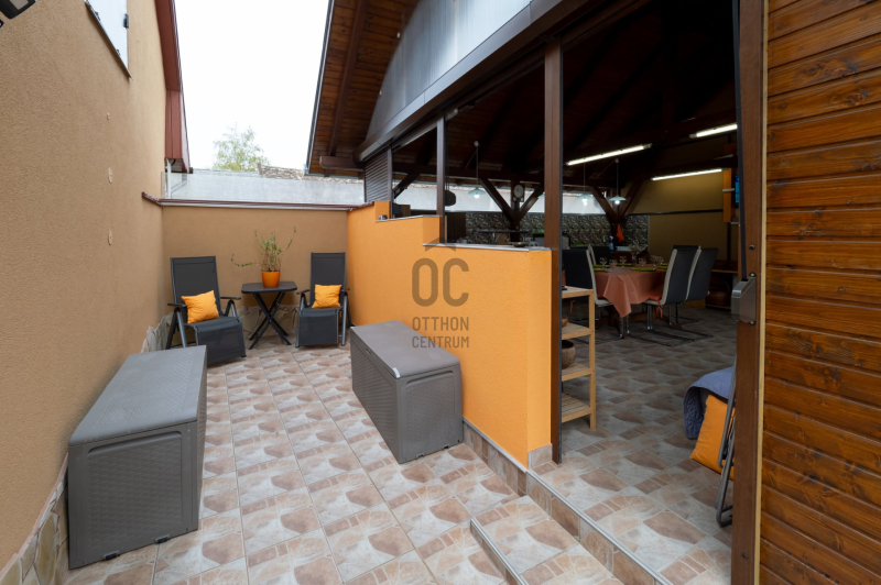 - A lakó szinten 28m2-es TONDACH cseréppel fedett, nagyon praktikus, falakkal és fémredőnyökkel körbezárt grillterasz lett kialakítva, májustól, októberig kint lehet élni!
