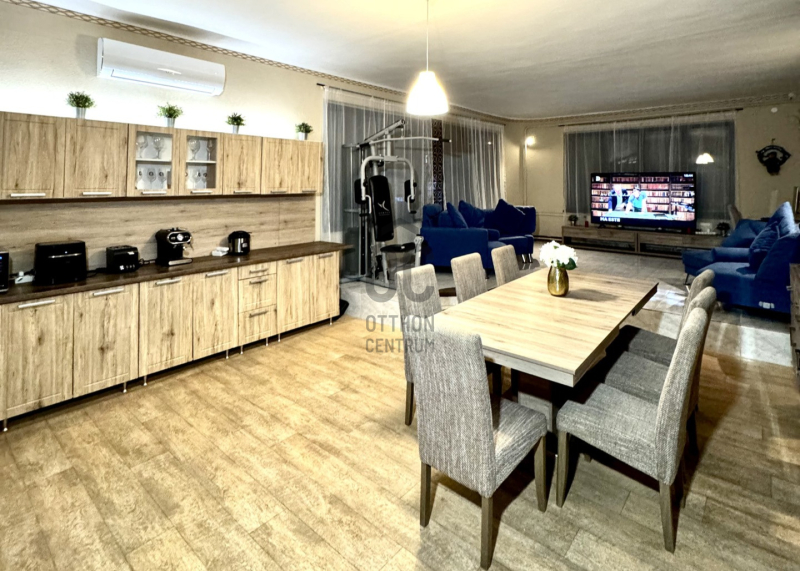 Fűtéséről gázkazán és 4 darab hűtő–fűtő klíma gondoskodik, továbbá H-tarifa is rendelkezésre áll. A ház bútorozottan eladó, azonnal költözhető.