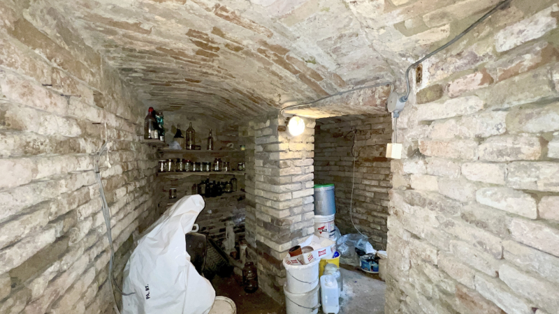 A ház alatt kifalazott pince van. A bejövő vízvezetéket kpl csőre cserélték, ami a pincében látható.