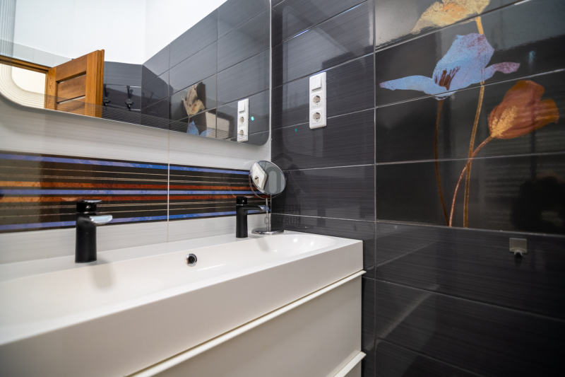 A luxus kialakítású konyha minden részletében átgondolt: Siemens prémium kategóriás gépek gondoskodnak a praktikus elrendezésről, a harmonikus színvilág pedig stílusos megjelenést biztosít. A lakás bőséges természetes fényt kap, azonban a csend is garantált, mivel az új nyílászárók 3-rétegű üvegezéssel rendelkeznek, és a lakás minden oldalról kiváló hő- és hangszigetelést kapott. A jobb térkihasználás jegyében egy padlás / tároló is kialakításra került az előszoba felett.