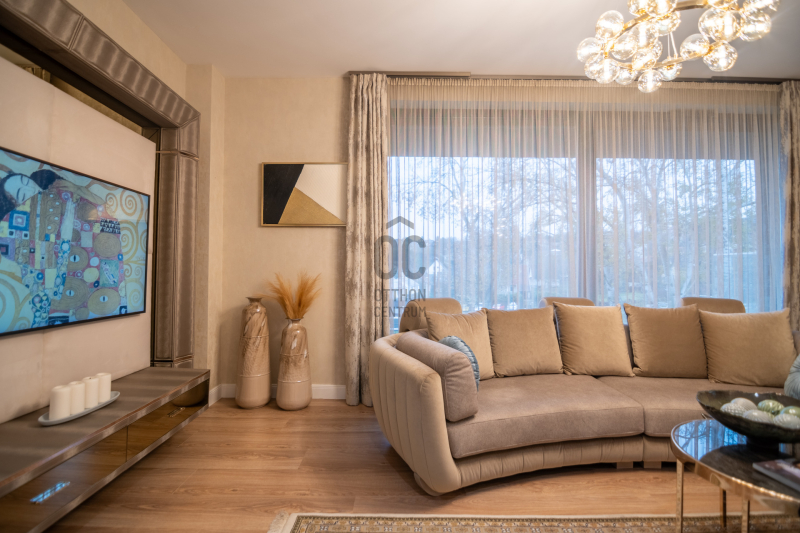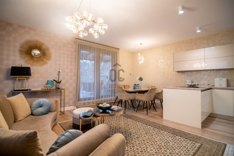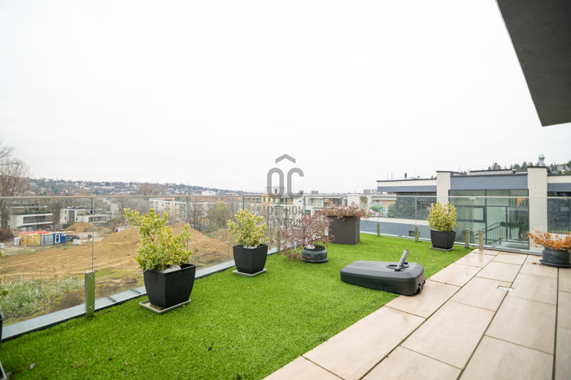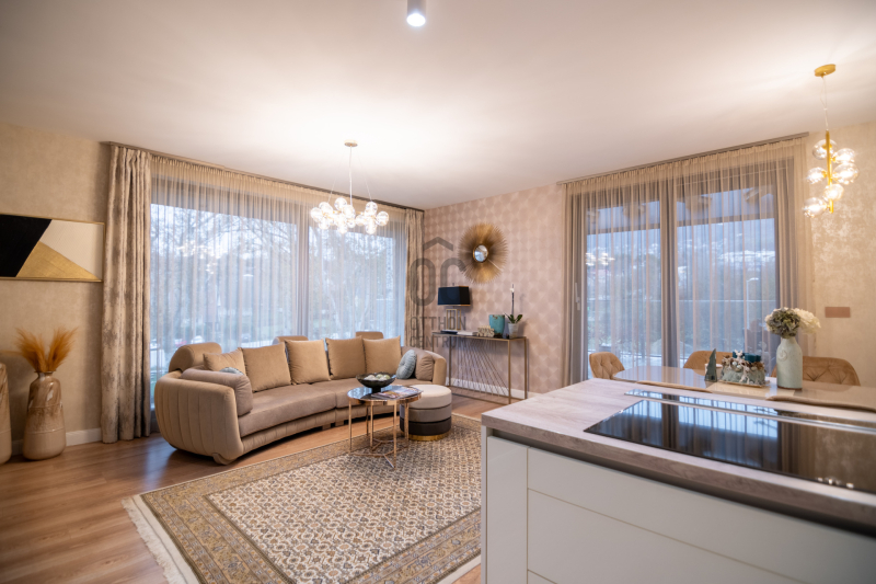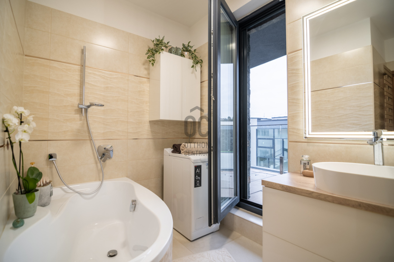 A nappali + 2 szobás lakás két hatalmas, összesen 60 m²-es panorámás terasszal várja új bérlőjét. A modern, jól felszerelt amerikai konyha, a gondosan kiválasztott burkolatok és a teljes bútorzat egyszerre praktikus és elegáns. A padlófűtés és a klíma egész évben kényelmes hőérzetet biztosít.