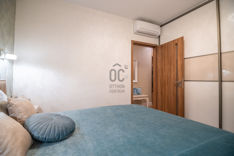 A lakáshoz saját, zárható tároló és teremgarázs-beálló tartozik. A ház csendes, rendezett, a minőségi kivitelezés, a motoros redőnyök és a biztonsági ajtó gondoskodnak a nyugodt, igényes élettérről.