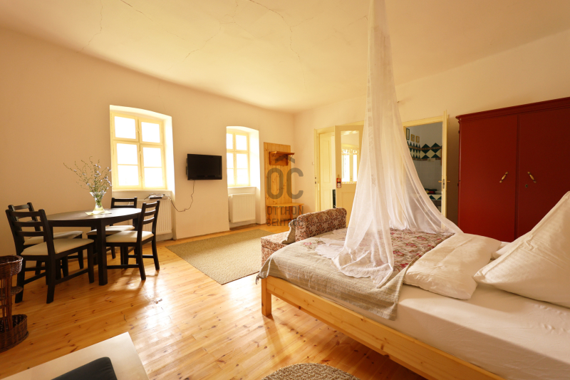 A főépület 280 m2, amelyben található 4 felújított lakrész, ami nagyon könnyen összenyitható.