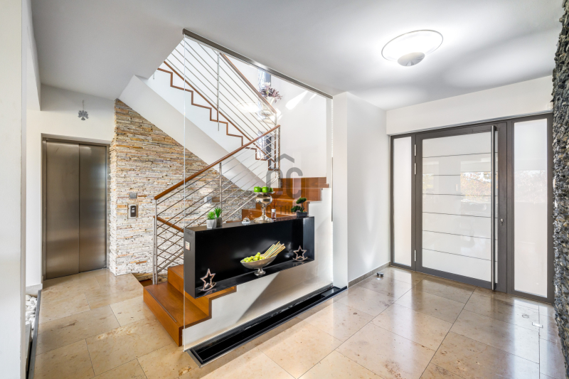 Technológia: geotermikus hűtés–fűtés (szondás hőszivattyú), padló- és falfűtés, falhűtés, hővisszanyerős szellőztető rendszer, napelemek és napkollektorok, továbbá okosotthon-rendszer, beépített multiroom hangrendszer, kamerarendszer és riasztó a legmagasabb fokú biztonság érdekében, valamint lift a kényelmes, energiatudatos mindennapokhoz.