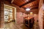 A borozó ajtaja és bútorzata Ázsiából származó, több mint százéves hajófa anyagból készült, eredeti viaszolt felülettel megőrizve.