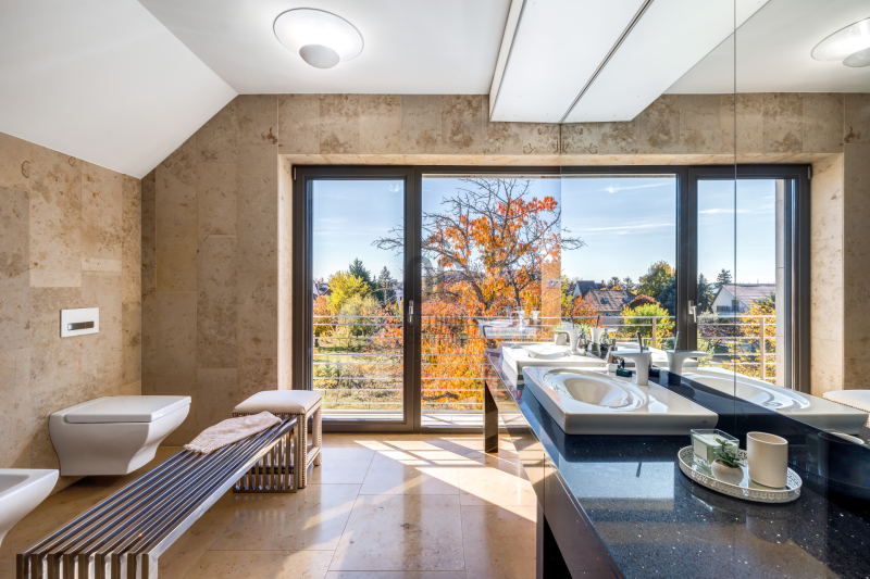 A nyílászárók 7 kamrás, háromrétegű reflexiós üvegezésű rendszerek, amelyek kiemelkedő hő- és hangszigetelést biztosítanak.