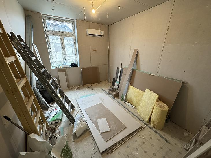 Újpesten, az Aschner Lipót tér közelében, zöldfás mellékutcában, eladásra kínálunk egy közvetlen utcafrontról nyíló, jelenleg teljeskörű felújításon áteső, 38 nm-es, amerikai konyhás nappali+1 szobás elrendezésű házrészt, jelen befejezetlen állapotban.