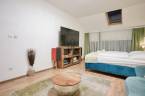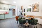 - prémium minőségű, gépesített konyha – beépített főzőlap, sütő funkcióval rendelkező mikróhullámú sütő, beépített mosogatógép és hűtőszekrény