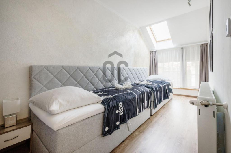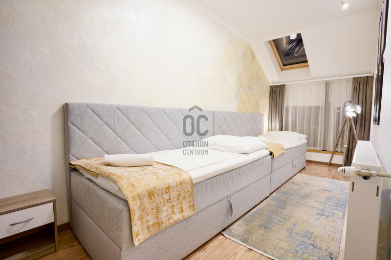 - 3 db hálószoba: külön klíma mindegyikben, szép laminált burkolat, műanyag és velux tetőablakok, távirányítós redőnyökkel.