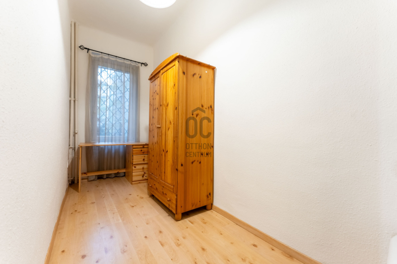 A belső udvar külön érték: zöld, csendes kert, padokkal és fedett biciklitárolóval — ritka előny a környéken.