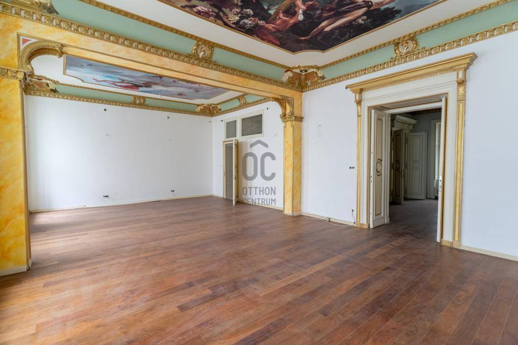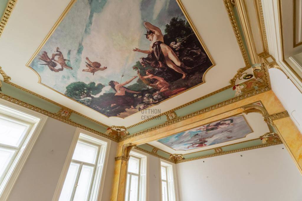A terek különleges hangulatát eredeti, míves freskók adják, amelyek egyedi, művészi karaktert kölcsönöznek a lakásnak. A magas belmagasság, a tágas terek, a hatalmas ablakok és a finom részletek igazi nagypolgári eleganciát árasztanak.