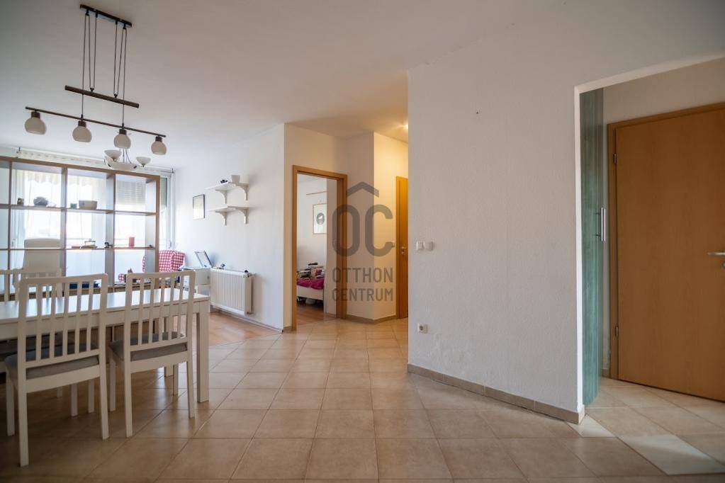 A lakás 5. emeleti, 67 m2 + 11 m2 teraszos, nagyon JÓ ALAPRAJZÚ, kelet-nyugati tájolású, nappali szobájával egy légtérben található a konyha, de mégis attól elkülönítve. Két hálószobájából az egyikből közvetlenül ki lehet jutni a teraszra, a másikból csodálatos városi és GELLÉRT-HEGYI PANORÁMA tárul elénk.
