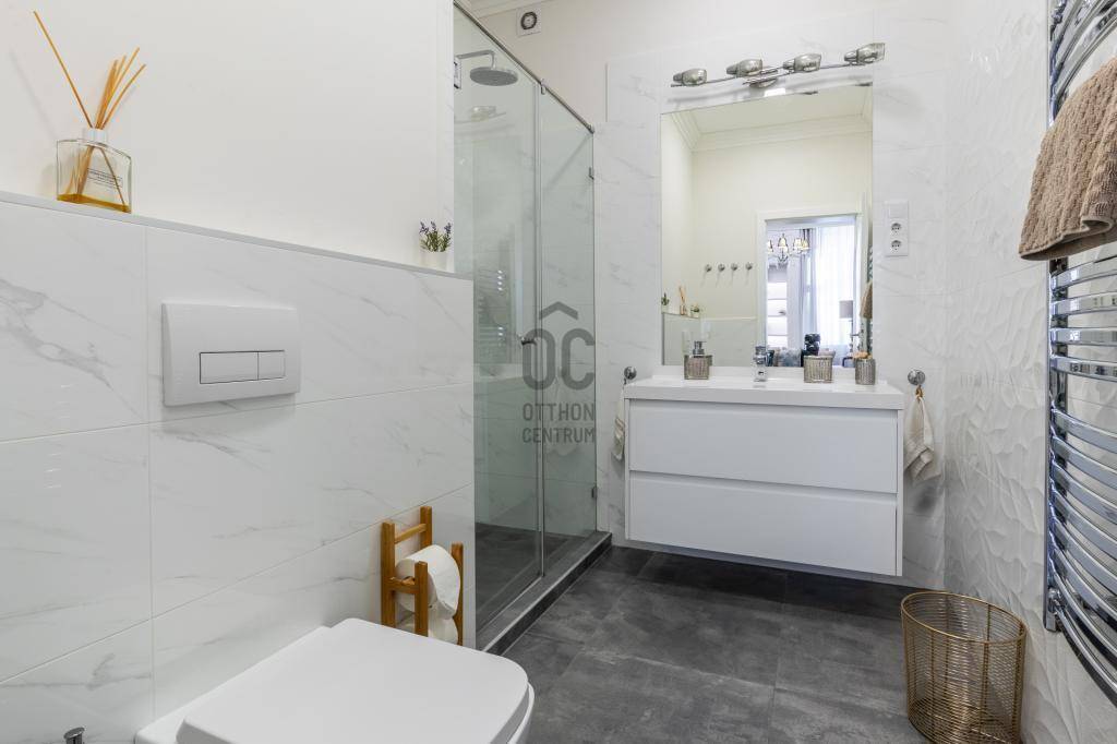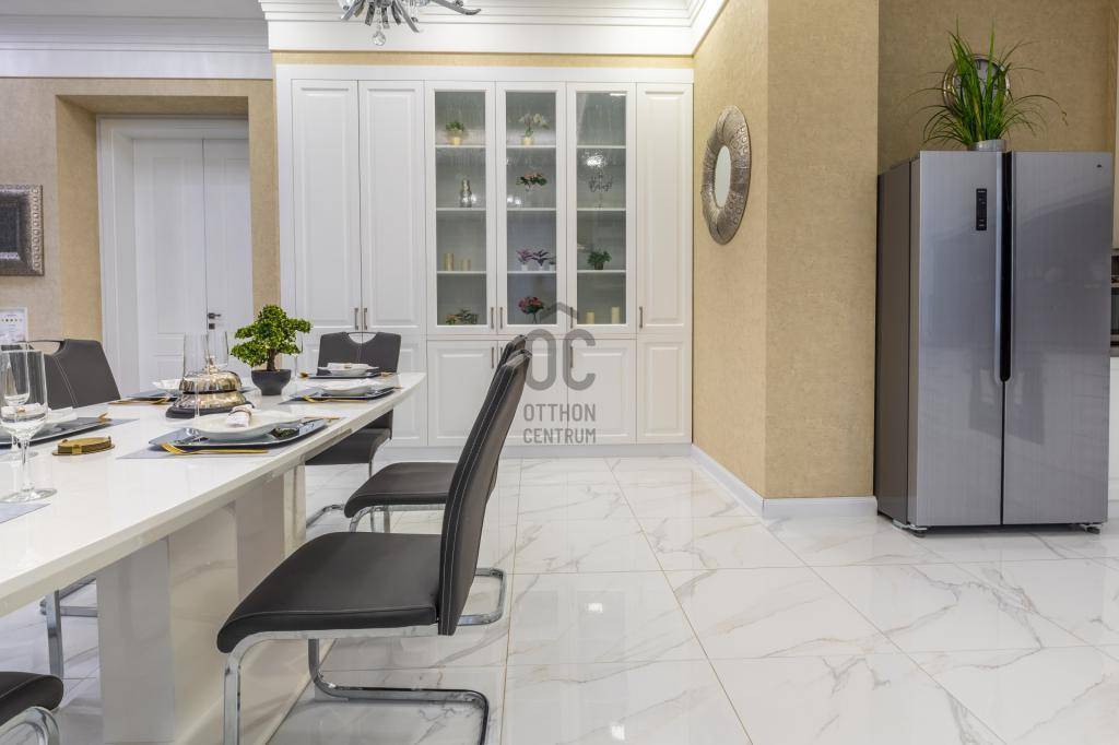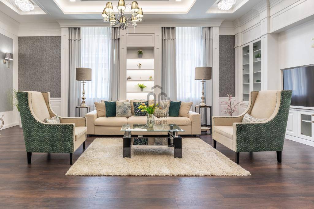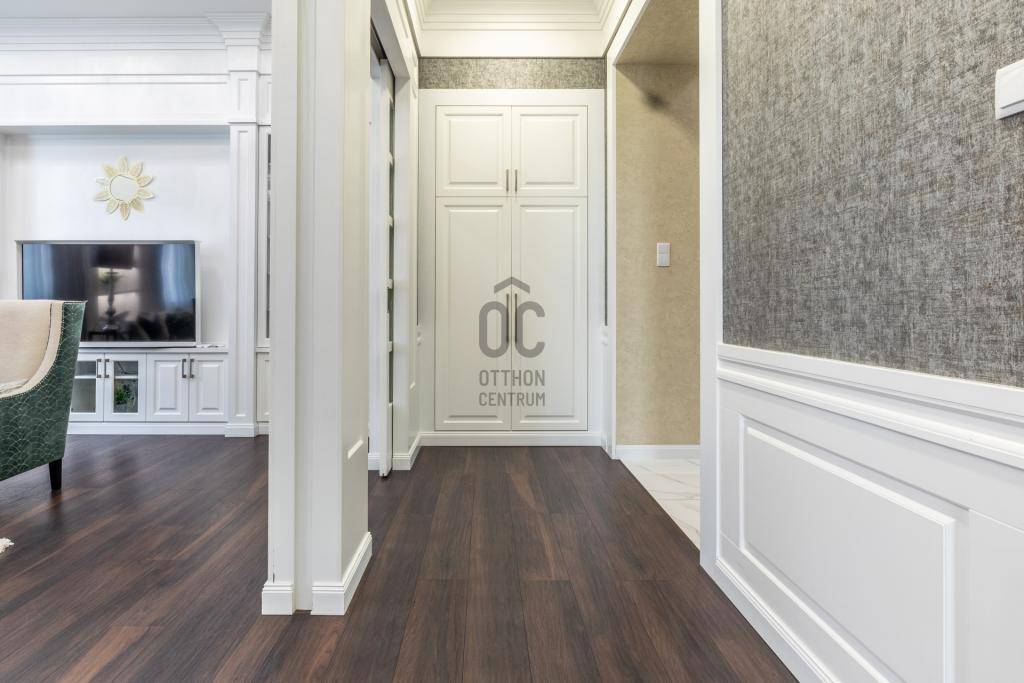 Elegáns, 3 szobás, erkélyes lakás, igényes bútorzattal eladó, pezsgő, modern, mégis klasszikus hangulatú környezetben.