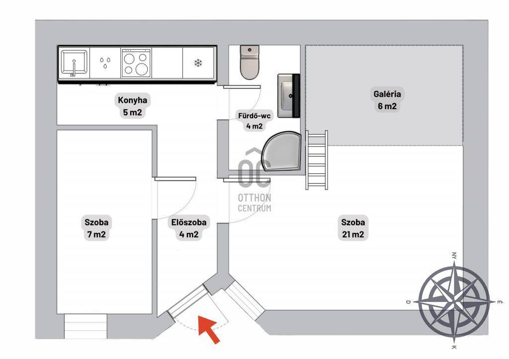 ️ Földszinti, 41 m2-es, kétszobás, fekvő galériás nappalival rendelkező ingatlan.