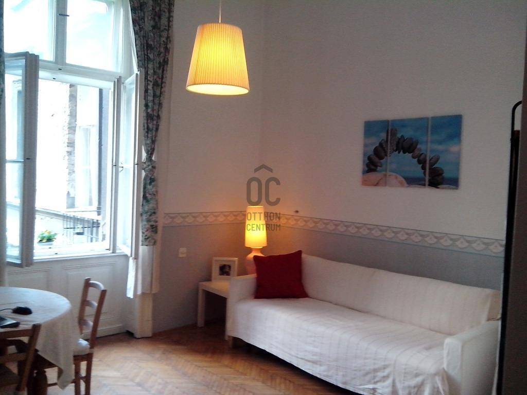 VI.ker. Andrássy út körúton belüli részén a Nagymező utcánál liftes bérpalota II. emeletén 65 nm-es bútorozott, jó állapotú lakás kiadó! Bejárata közvetlenül a lépcsőházból nyílik, helyiségek: 2 külön bejáratú szoba, konyha, fürdőszoba, wc külön helyiségben, előszoba, erkély. A lakás ablakai és az erkély a csendes belső udvarra néznek. Az ablakok előtt nincs folyosó, nincs járkálás. Fűtés gáz konvektorral, belmagasság 390 cm, közös költség 21.000 Ft. Kisállat megengedett, dohányzás kizárólag az erkélyen lehetséges. Kaució 2 havi bérleti díj.