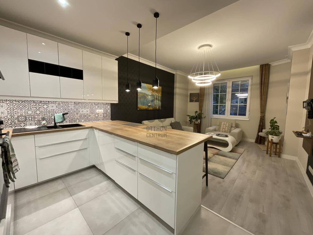 A lakás amerikai konyhás nappalival rendelkezik, minden szoba külön nyílik, és a teljes ingatlanban padlófűtés biztosítja a kényelmet. A ház homlokzata szigetelt, valamint új tetőt kapott, így műszakilag is kifogástalan állapotban van. A lakáshoz pince is tartozik, amely további tárolási lehetőséget nyújt. A környék csendes, mégis közel helyezkedik el a kiváló tömegközlekedési kapcsolatokhoz. Az ingatlan azonnal költözhető, valamint hitelre is megvásárolható.