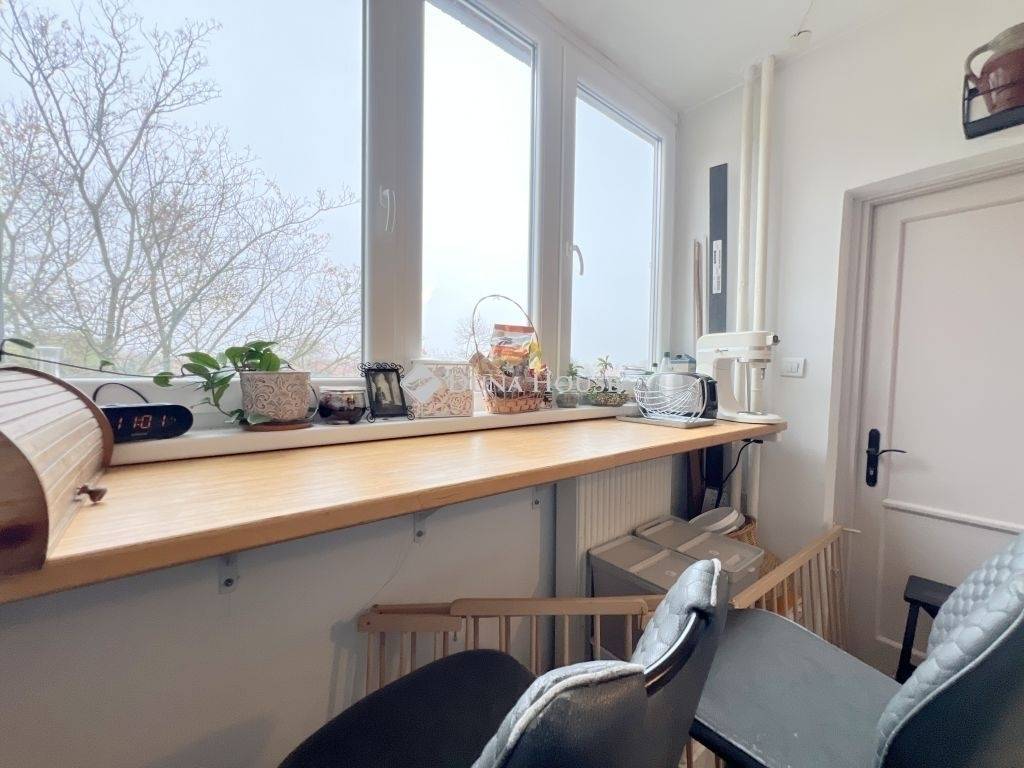 A társasházra nem lehet panasz, az elmúlt 7 évben megtörtént a központi kazán cseréje, a lépcsőházban kicserélték a kapukat és a nyílászárókat valamint az épület oldalfalait leszigetelték. A lakásban még akkor is jó idő van, ha a radiátorokat letekerik. A közös költség 35.000 Ft, ami tartalmazza a hideg és meleg víz fogyasztást valamint a fűtést, minden év végén határozzák meg a következő évben fizetendő átalánydíjat, fogyasztás alapján. A földszinten vannak közös tárolók is, amelyek babakocsi, bicikli, barkácsholmik tárolására tökéletesek. A házba kóddal lehet bejutni.