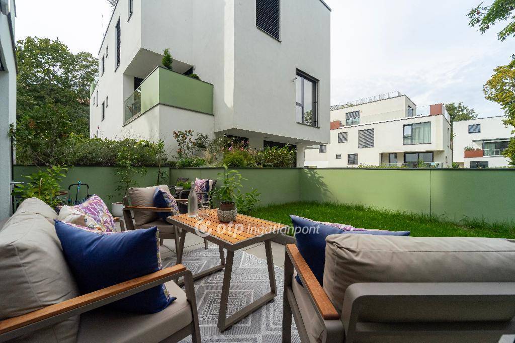 A mindössze néhány lakásos, exkluzív lakóparkban található 94 nm-es ingatlanhoz egy 21 nm-es tágas terasz és egy 12 nm-es, privát, füvesített kert tartozik.