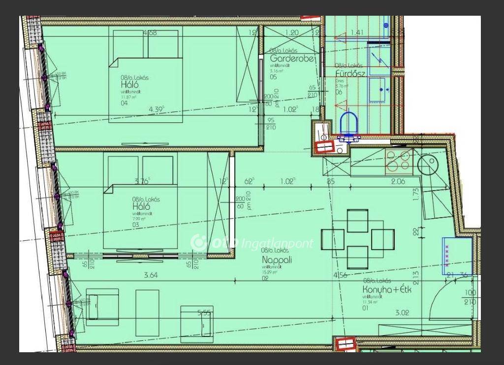 Eladó egy 56 nm-es, 2+1 félszobás, új építésű lakás a társasház harmadik emeletén.